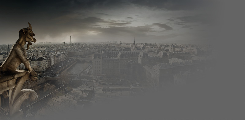 Cette série de panoramiques "Regard sur Paris" est une invitation à flâner et à découvrir autrement la capitale sous la protection des gargouilles de Notre-Dame qui telles des sentinelles veillent jalousement sur leur ville.